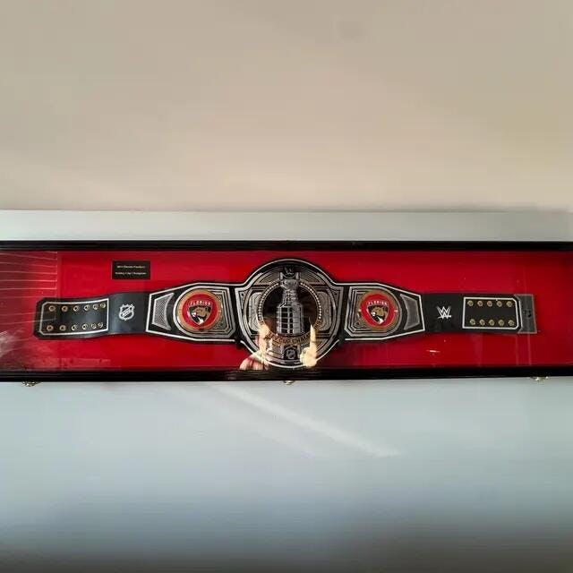 This wrestling belt display case comes with two strong non-marking padded metal mounting plate/hooks. Protected by our ultra-clear, specially-coated, UV-protection acrylic. Front opening door. Case comes fully assembled. Mounting hardware is shipped in the same package.